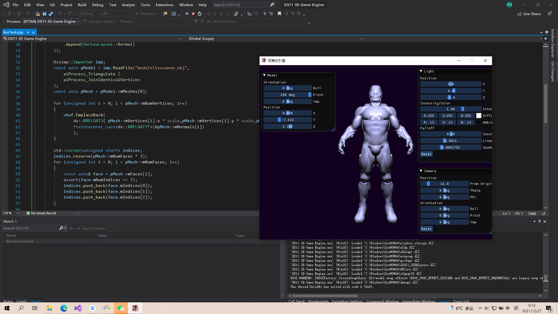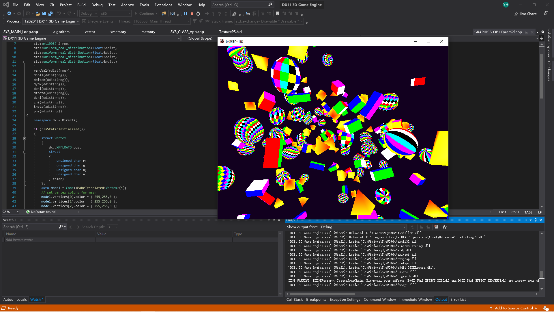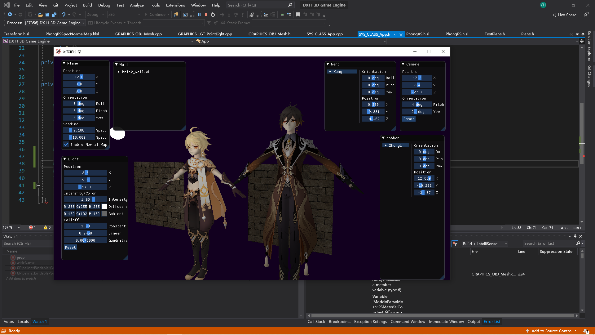 A 3D game engine built on DirectX 11 and Win32 interfaces. The engine implements contemporary game engine subsystems including Resource Management, Job System, and Render Graph, with an emphasis on low coupling and high extensibility.
